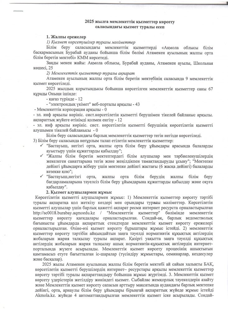 Коммунальное государственное учреждение "Общеобразовательная школа села Атамекен отдела образования по Бурабайскому району управления образования Акмолинской области"