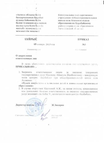 Коммунальное государственное учреждение "Общеобразовательная школа села Атамекен отдела образования по Бурабайскому району управления образования Акмолинской области"