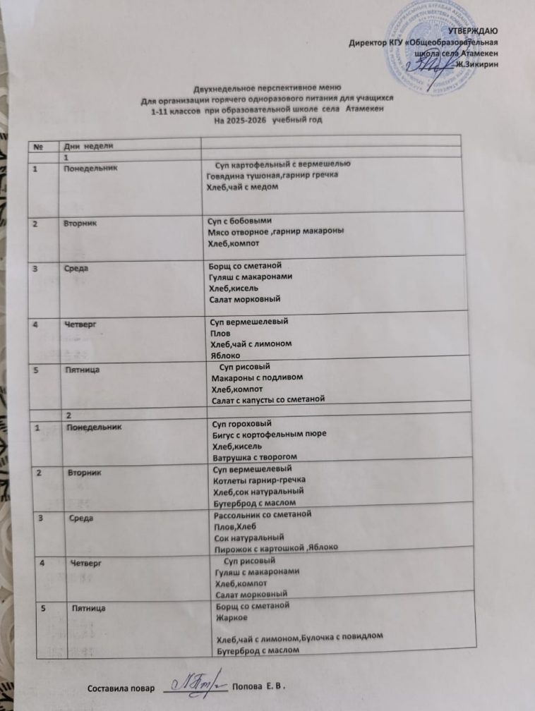 Екі апталық перспективалық мәзір