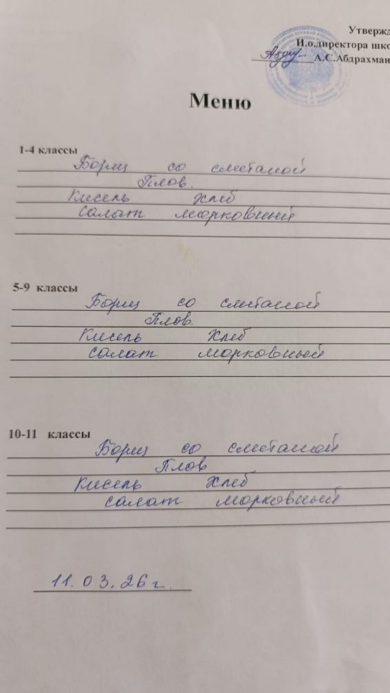 11.03.2026 жылға арналған тағам мәзірі