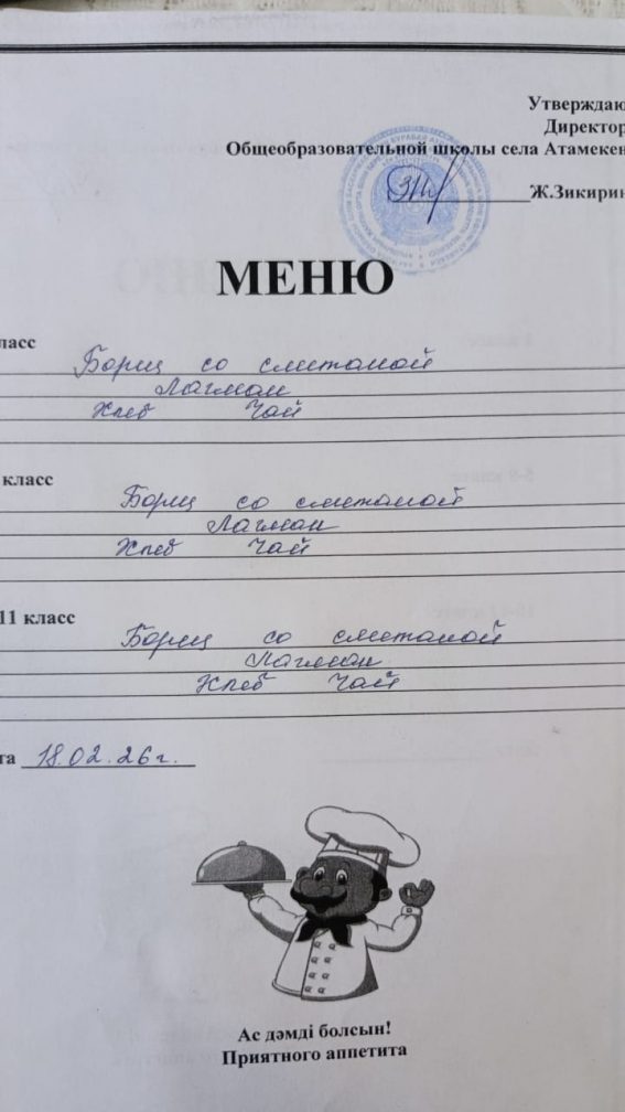 18.02.2025 жылға арналған мәзір