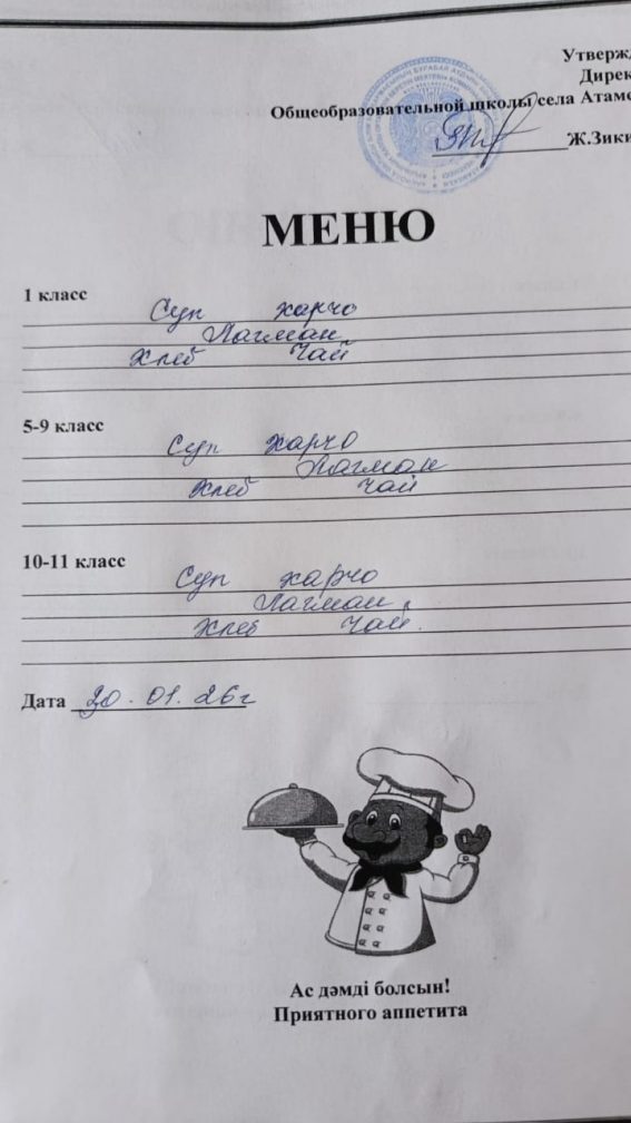 30.01.2026 ж. арналған мәзір