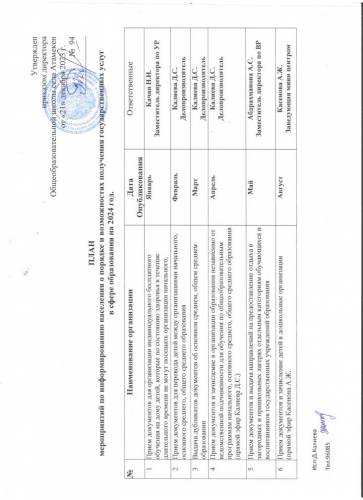 План мероприятий по информированию населения о порядке и возможностях получения государственных услуг в сфере образования на 2024 год