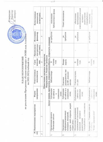 План мероприятий по реализации программы "Рухани жаңғыру" на 2022-2023 учебный год