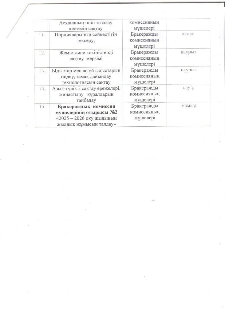 Бракераж комиссиясының жұмыс жоспары