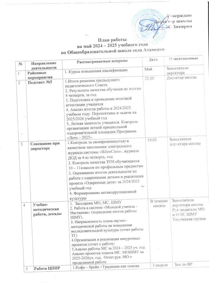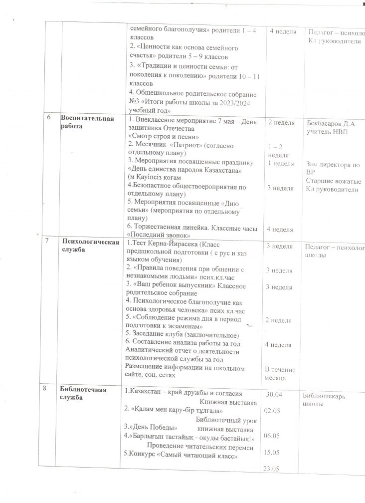 План работы на май месяц