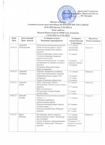 План работы недели психологии