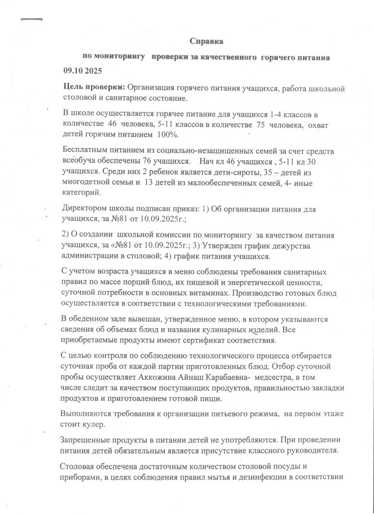 Ыстық тамақты тексеру мониторингі бойынша анықтама