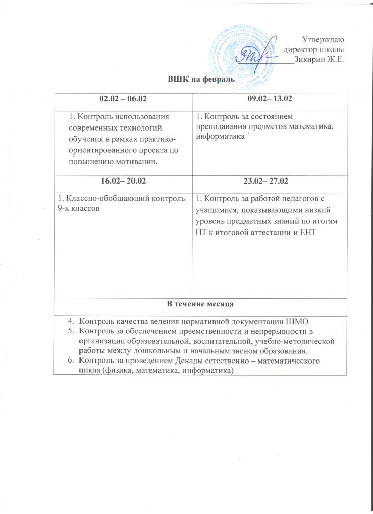 Ақпан айына арналған мектепшілік бақылау